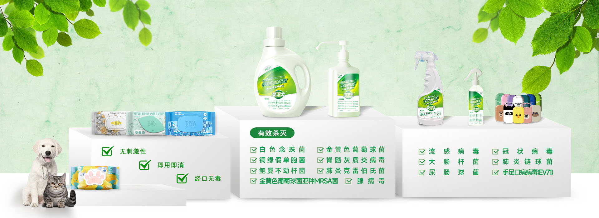 在公共安全领域中,有适用于一般性公共环境的季铵盐类消毒剂、智能消杀机器人、及定制化的洗消服务等,我们用优质的产品和专业的服务来守护公共领域的卫生安全。